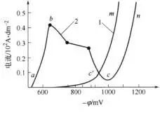 From the above reactions, it can be seen that the cathodic reaction of chrome plating is quite complex. Now, using the theory of colloidal membranes and the polarization curve of chrome plating, we briefly describe the mechanism of chrome plating. At the beginning of electrification, the first reaction that occurs is the reduction of hexavalent chromium to trivalent chromium (reaction formula ①), as shown in segment ab of the polarization curve in Figure 1. As the potential shifts negatively, the current density increases dramatically, and the speed of reaction ① producing trivalent chromium is very fast, with the potential shifting to point b, where the current reaches its maximum value. After point b, the potential reaches the point of hydrogen ion precipitation, thus reactions ① and ② occur simultaneously. Looking at segment bcd of the polarization curve, as the potential shifts negatively, the current density gradually decreases, indicating that the state of the electrode surface has changed. Because reactions ① and ② consume a large amount of hydrogen ions, the pH value at the electrode interface increases, forming a layer of basic chromic acid colloidal membrane (Cr(OH)3·Cr(OH)CrO4), covering the electrode surface, increasing resistance, thus decreasing current density. The increase in pH near the cathode surface creates conditions for Cr2O72-ions to convert to CrO42-ions, leading to reaction ③ proceeding to the right, and the concentration of CrO42-rapidly increases. When the potential shifts to point d, the corresponding potential ψ at this point is the reduction precipitation potential of chromium ions, and reaction ④ begins. Segment de is the true polarization curve of chrome plating, where reactions ①, ②, ③, and ④ occur simultaneously, and as the potential shifts negatively, reaction ④ accelerates rapidly. Under the action of the catalyst sulfate ions, the colloidal membrane covering the electrode surface dissolves: this dissolution first occurs locally and then gradually expands, exposing a small area of the substrate, resulting in a very high real current density and significant polarization, allowing the reduction of chromium to proceed at a certain speed. A colloidal membrane will again form on the surface of the newly formed chromium layer, and the dissolution and formation of the colloidal membrane continue to cycle, playing an important regulatory role. The presence and concentration of SO42-and the trivalent chromium generated at the cathode, although not directly involved in the electrode reactions, are crucial to the quality of the chrome plating layer. Trivalent chromium is an important component of the colloidal membrane; if its concentration is low, the colloidal membrane is difficult to form or is thin and porous after formation, easily dissolved by sulfuric acid. At this time, the exposed substrate area is large, and the low current density areas cannot reach the precipitation potential of chromium, resulting in poor coverage due to low trivalent chromium; if the concentration of trivalent chromium is high, the colloidal membrane is thick and dense, difficult to dissolve by sulfuric acid, and the chromium layer can only grow on the original crystal grains, leading to rough crystallization and a dull, non-lustrous plating layer. High sulfuric acid content easily dissolves the colloidal membrane, resulting in no chromium layer in low current density areas, similar to the situation with low trivalent chromium; insufficient sulfuric acid leads to a situation similar to that with high trivalent chromium, resulting in a rough chromium layer. Therefore, it is essential to strictly control their concentrations in chrome plating, especially the ratio of chromic anhydride to sulfuric acid.铬酸酐与硫酸的比值。